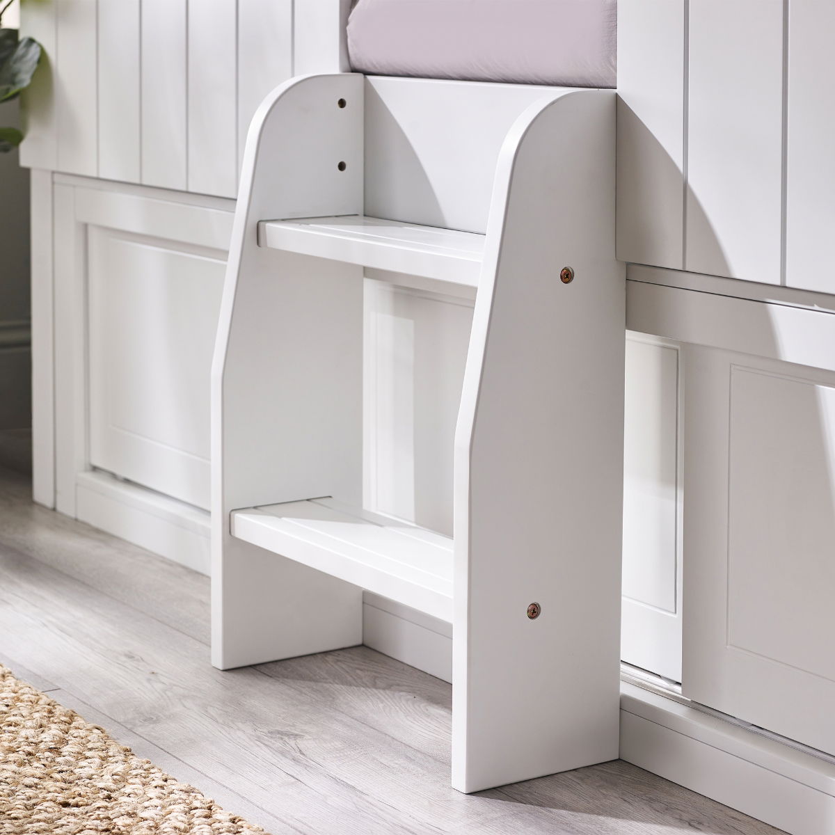 Step into a whimsical woodland wonderland with the Acorn Treehouse Midsleeper & Storage Unit, transforming your child's bedroom into an enchanting escape. This magical treehouse-style bed boasts a charming white panelled front and rooftop adorned with two square windows, sparking imaginative adventures. Watch as your little explorer climbs into their cosy retreat using the two small step ladder and gets lost in endless daydreams while peering out of the roof gap. Below awaits a slide-door storage unit, the perfect hideaway for stowing books and toys - ensuring a tidy and organised space.