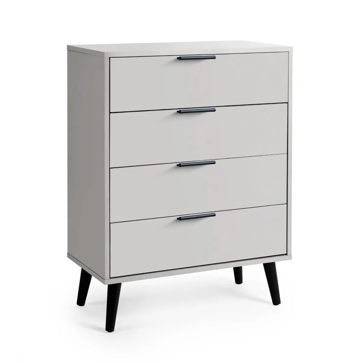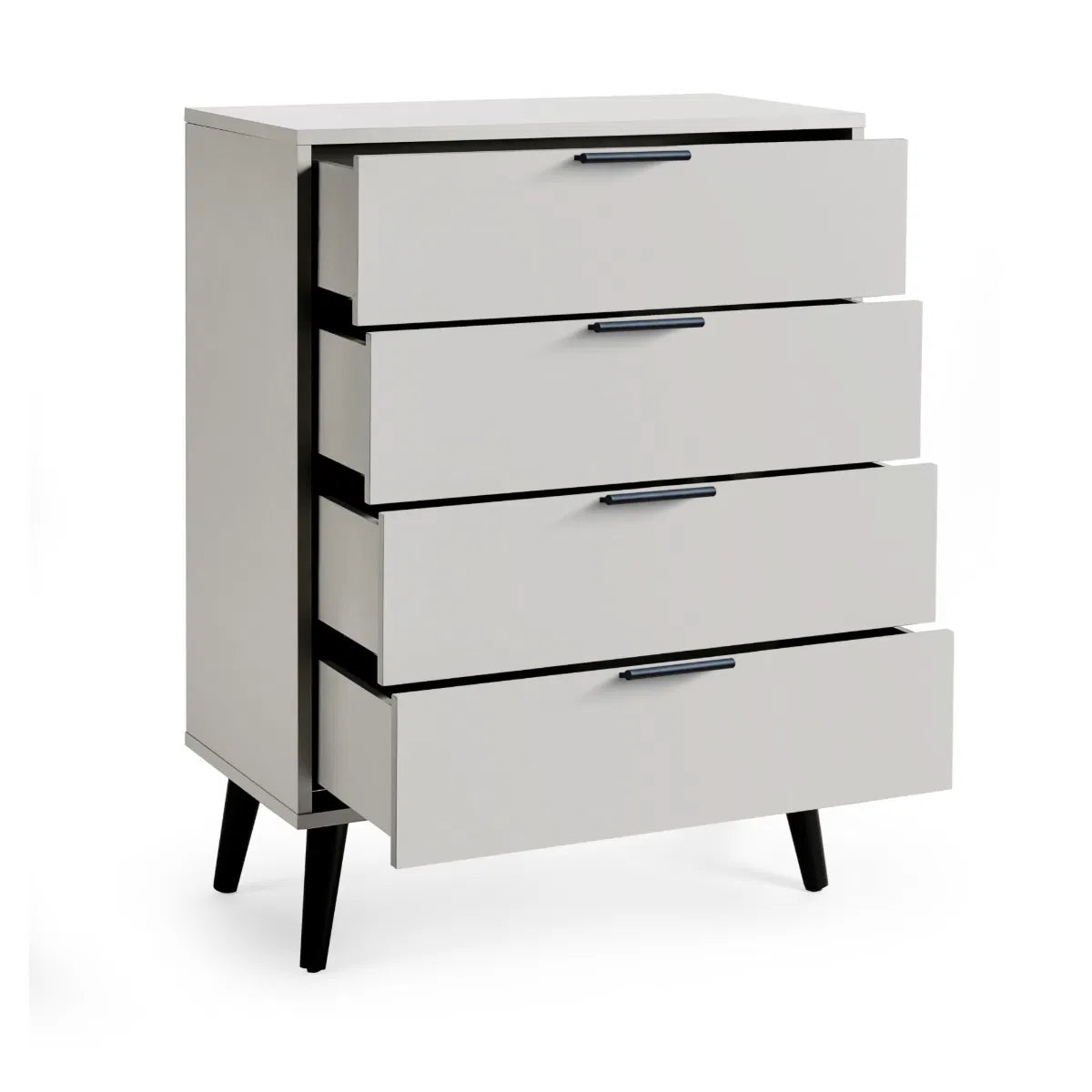 Sleek and stylish, the Alba 4 Drawer Chest in White and Oak brings a fresh look to any bedroom. The crisp white finish beautifully complements the warm oak accents, creating a modern yet inviting atmosphere. Four generous drawers provide ample storage space for everything from books to nighttime essentials, ensuring that your bedside remains organised and clutter-free. Each drawer features a smooth-gliding mechanism for effortless access, while the minimalist design adds a touch of sophistication.