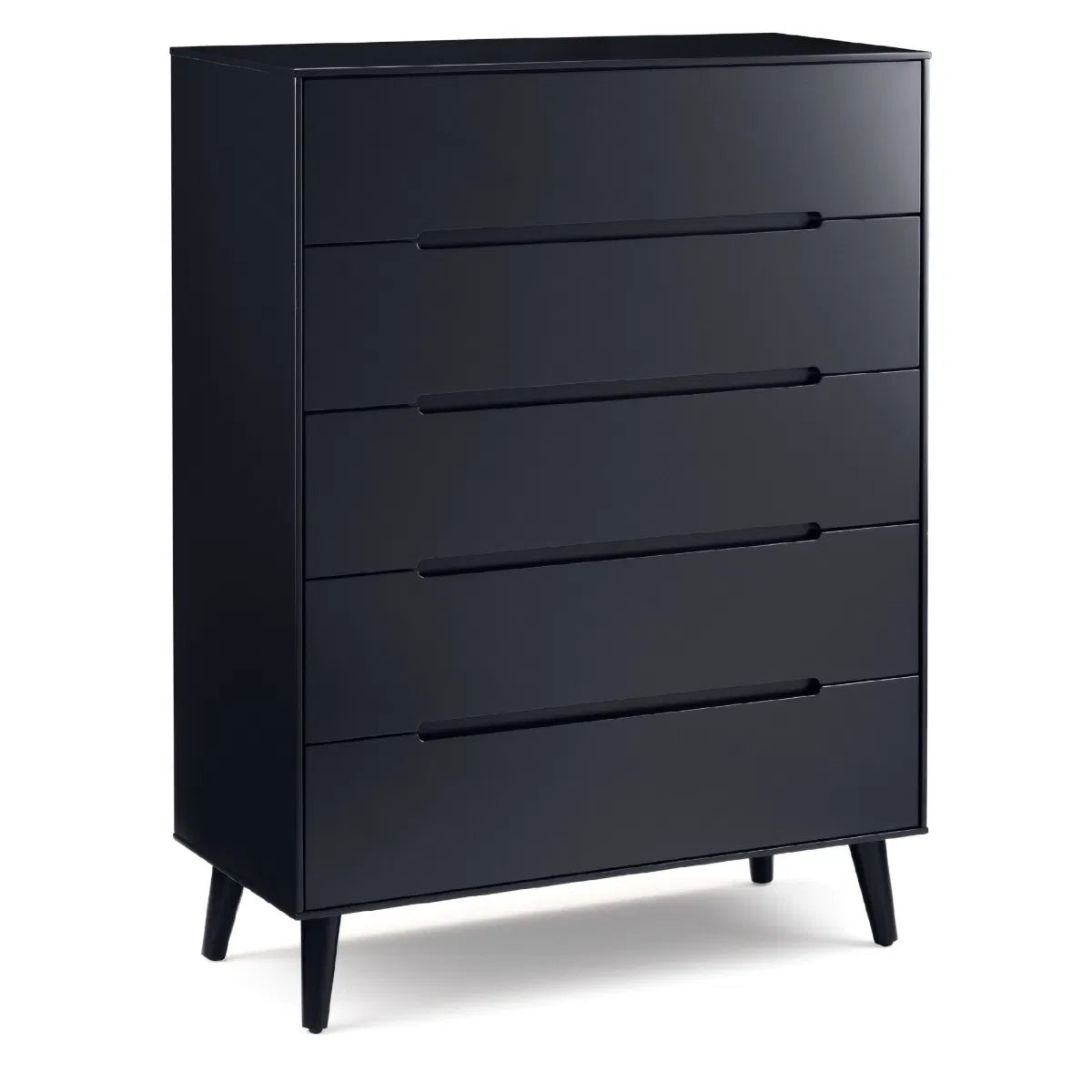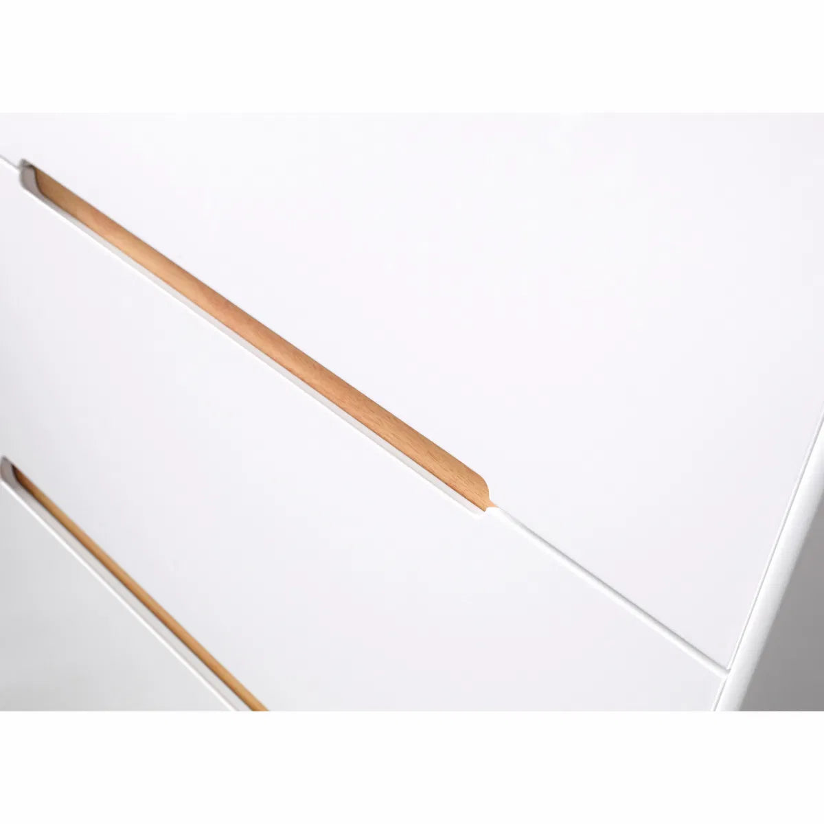 A stylish, retro-inspired chest with five large drawers in an immaculate matt white lacquered finish, with complementary tapered oak finish legs and recessed handles to provide easy opening. The sleek Scandinavian feel fits beautifully with any décor.