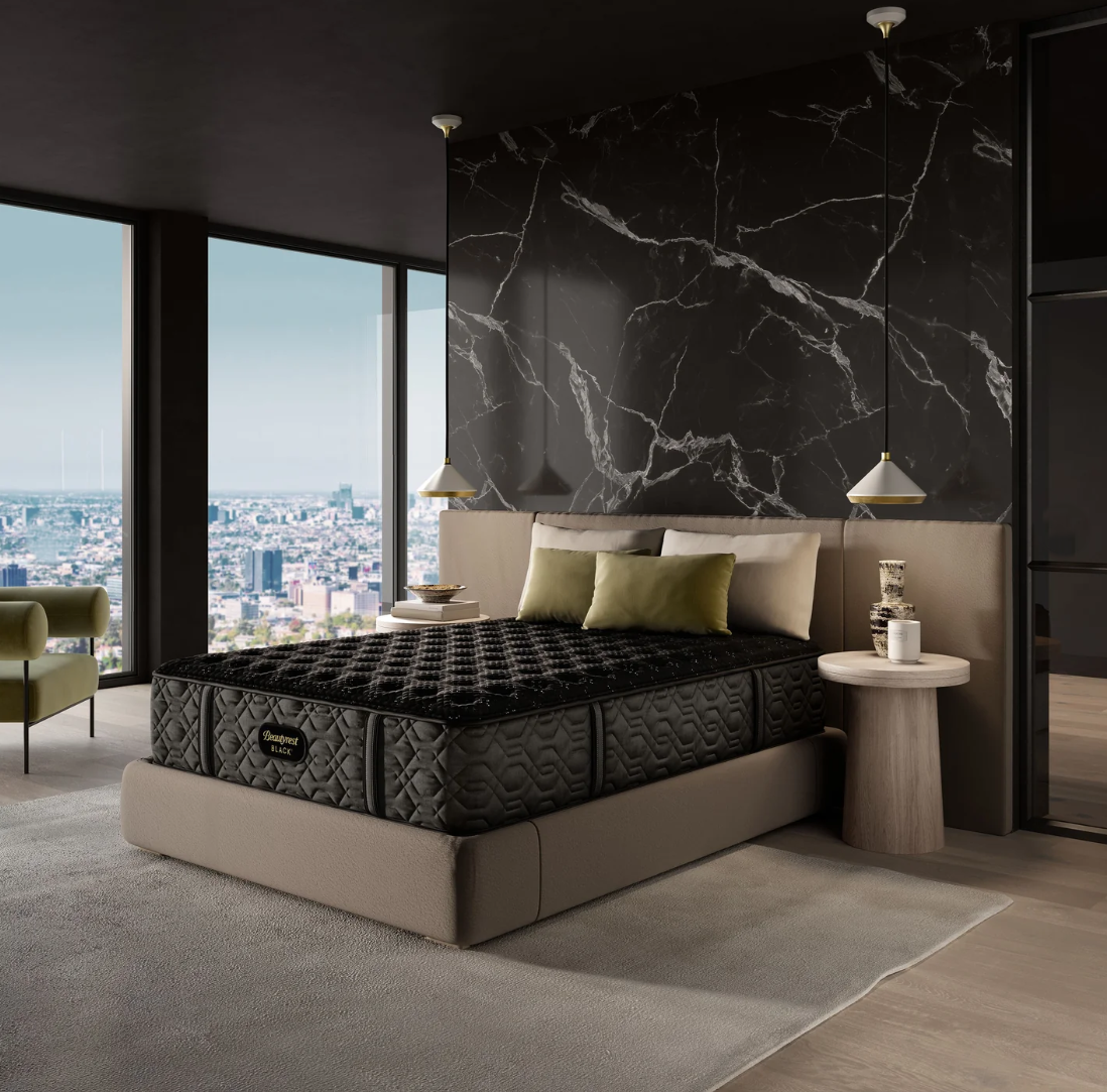 Discover where luxury meets innovation with Beautyrest Black®. Designed with Triple-Stranded Pocketed Coil® Technology, this mattress offers advanced, individualised support and motion separation. Sleep Climate™ Technology works with a Micro Diamond™ Memory Foam upgrade to enhance heat transfer from the body, while SurfaceTouch™ Gel Memory Foam and Self Response™ Latex upgrades conform to the body for responsive pressure relief. Experience our most advanced sleep system with Beautyrest Black®, so you can rest luxuriously.