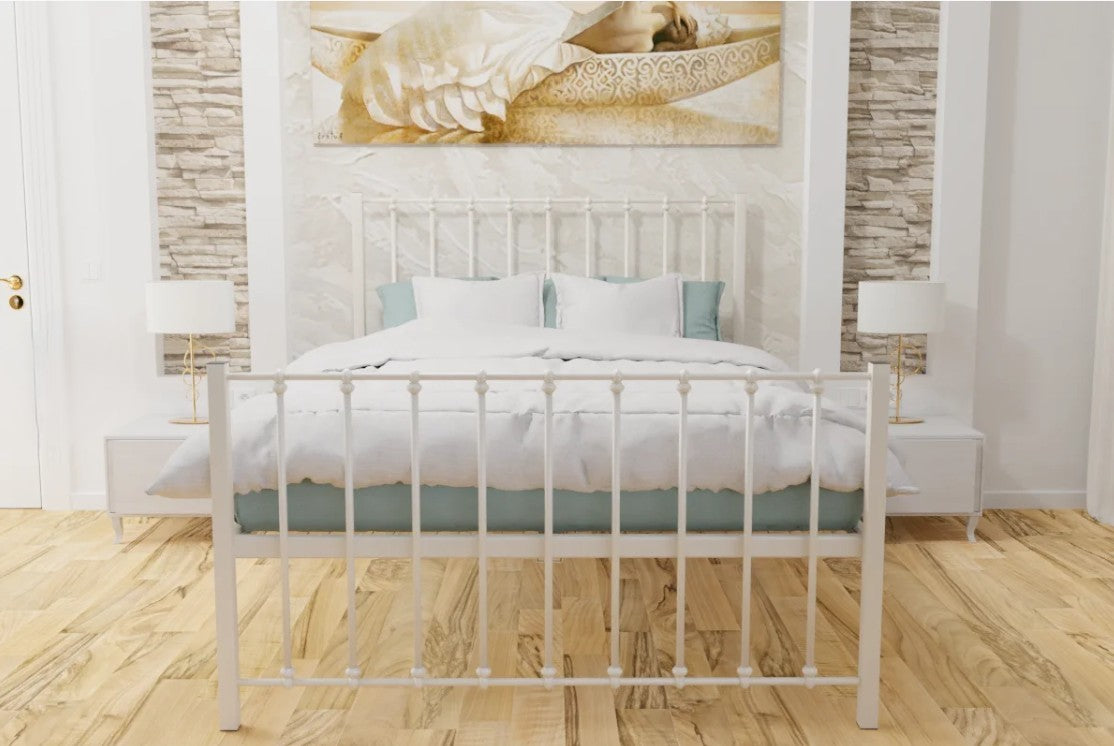 - Premium Craftsmanship: Constructed from high-quality wrought iron, this bed frame offers exceptional durability and strength. The robust metal structure ensures long-lasting performance and stability, providing a secure foundation for your restful nights.