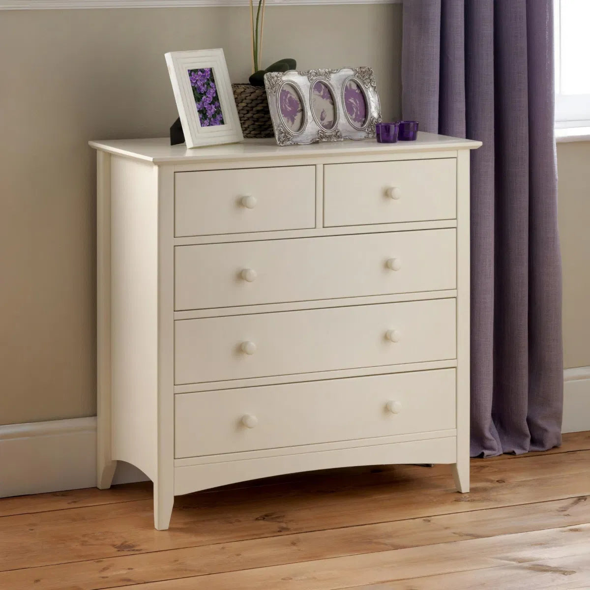 Classic Design: The Julian Bowen Cameo 3+2 Chest features a timeless stone white finish, adding a touch of elegance to any bedroom decor. Its classic design complements both traditional and contemporary interiors, making it a versatile addition to your home.