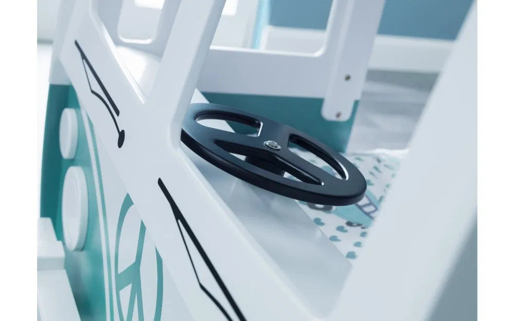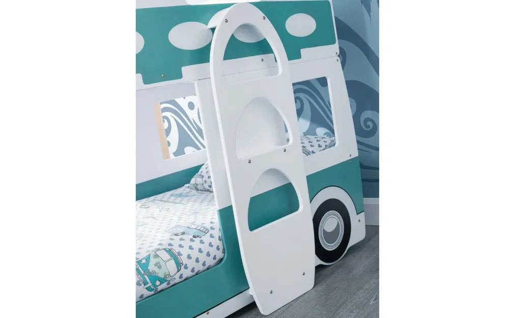 The Camper van Bunk Bed is the perfect fun design for your child's bedroom! This beautifully crafted, sturdy bed will make your child feel secure at bedtimes, as well as providing a fun space for them to use during the day. Featuring a surfboard style ladder, steering wheel and very accurate detailing to give a realistic look.