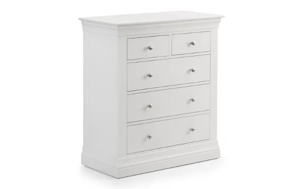 What’s Included: The purchase includes one Julian Bowen Clermont 3+2 Drawer Chest. Minimal assembly required - just add handles.