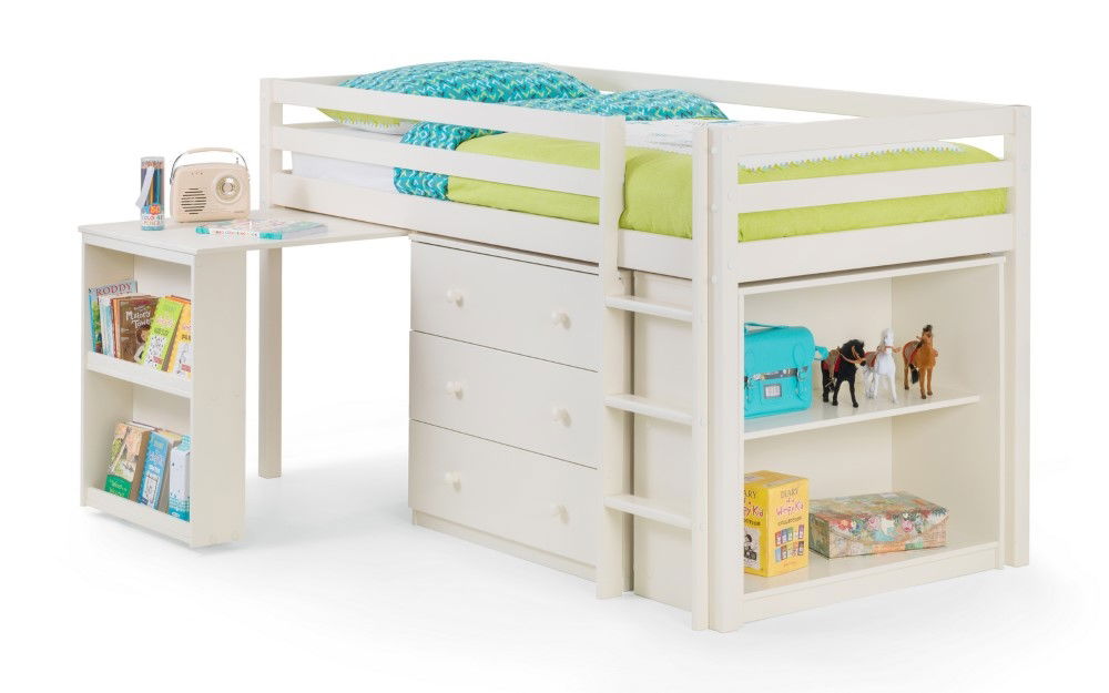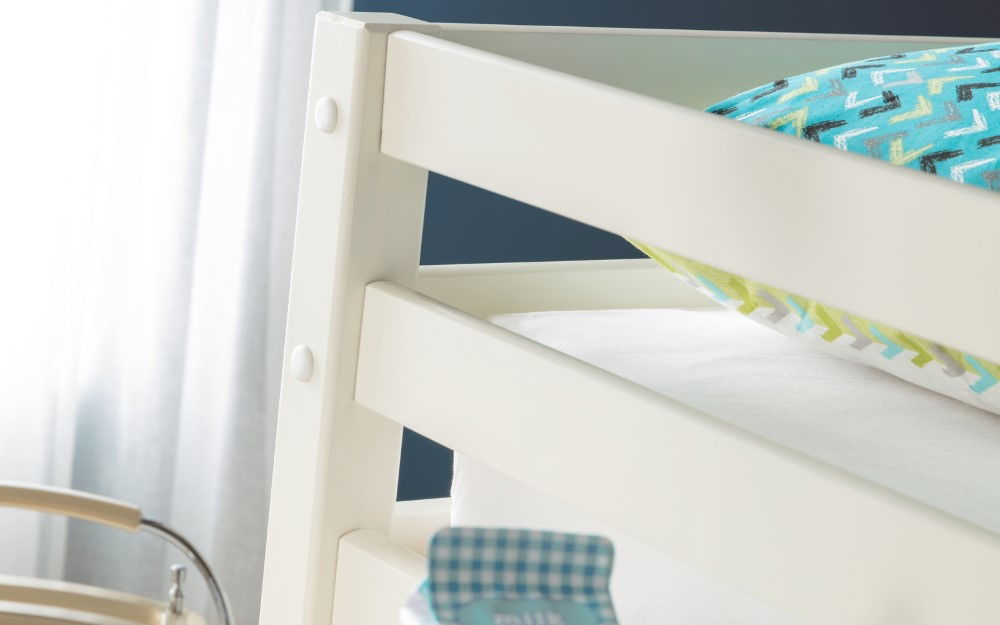 Roxy is an extremely clever and practical piece of children's furniture that offers incredible functionality and great value for money. Roxy's compact footprint is supported by a robust, solid pine framed construction and offers numerous useful features from a handy pull-out desk to ample shelving and cupboard space. Immaculately finished in a smooth stone white lacquer, Roxy comes with two choices of handle in either traditional painted wood, or a contemporary brushed steel finish. Roxy is the perfect accompaniment to Julian Bowen's Cameo range of bedroom furniture in a matching stone white finish.